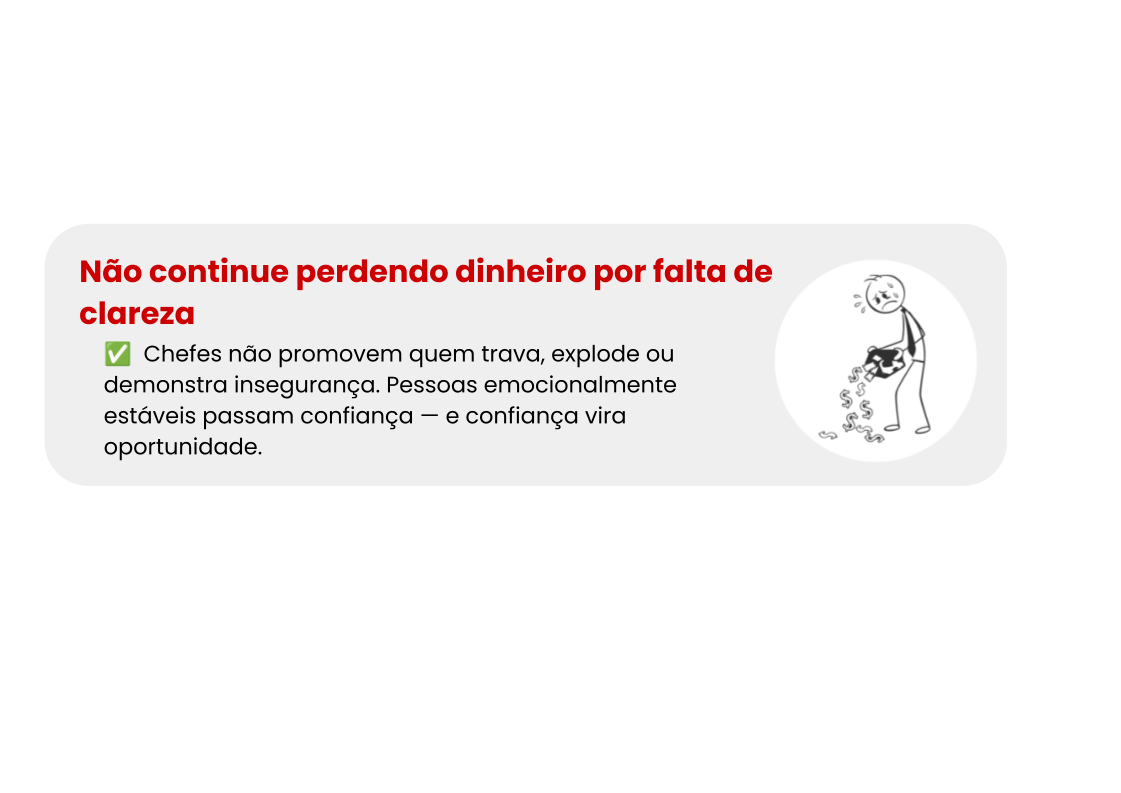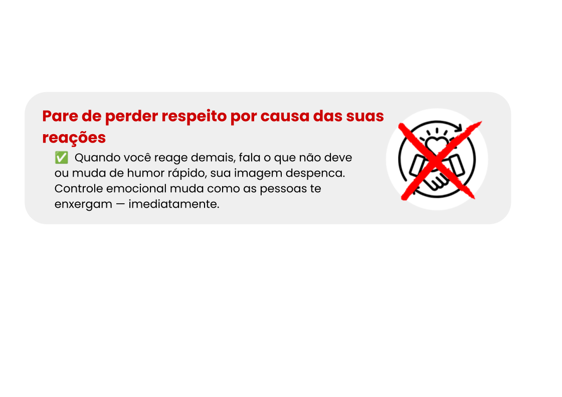 ✅ Respeito imediato — quando você controla suas emoções, as pessoas automaticamente te veem como alguém seguro e confiável.